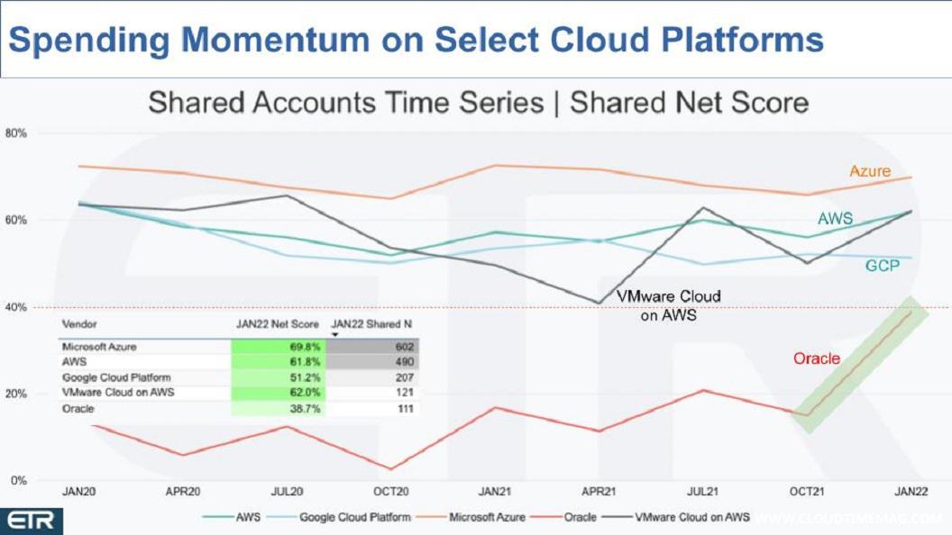 但是,这些数字中最大的惊喜是Oracle的稳步攀升和陡峭的上升势头,达到了仅低于40%的水平。当然,一个季度不代表一种趋势,但追溯到2020年1月,Oracle的峰值越来越高。这将继续引发市场的关注。
