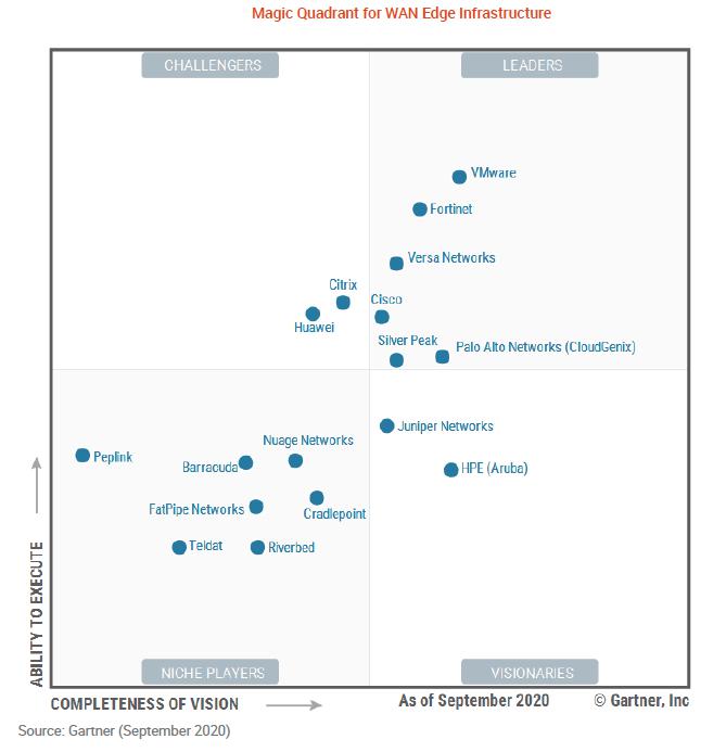 (Gartner 广域网边缘基础架构魔力象限,2020年9月)