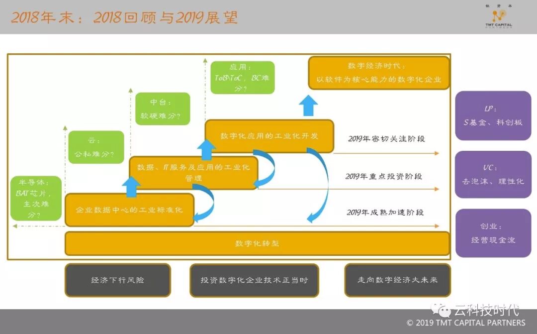 钛资本认为,在中国的企业服务市场仅仅依靠发展技术是无法立足的。技术与市场的关系就像是一幅变迁的地理版图,技术就好比是滚滚东逝水,而市场就是厚重的土壤,水遇到了土的阻挡只能绕道而行,但是流水慢慢冲刷也会改变格局、冲破阻挡。至于有多大改变,就需要看用多大的窗口期去看待技术与市场的关系变化。2019年科技和企业服务领域,创投两侧达成更趋同一致的共识,当然过去几年付出的代价也不斐。这也说明了一个问题,不管投资人原来是“哪路神仙”,一起在中国市场摔打数年,共识度应该且可以趋同。